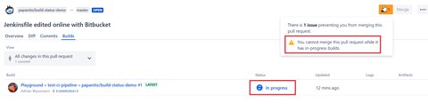 Build status of Jenkins build in Bitbucket may stay "In Progress" even so it succeeded, thus blocking merge of PR.