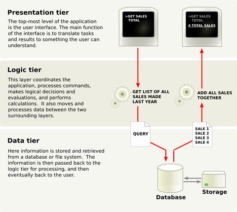 To overcome the challenge of maintainability, the multi-tier architecture a client-server architecture has been widely adopted, were the application is broken down in different layers, where each layer fulfills a dedicate function. For example, in a 3-tier architecture there are 3 layers, presentation - providing the user interface -, the application processing - responsible for the business logic - and data management - the intermediary between the application and the data storage. These layer communicate trough an interface. This facilitates the maintenance as you can work on one layer without touching the others - assuming the interfaces stay the same.