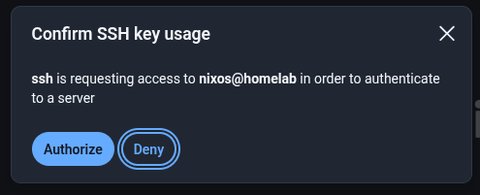 ssh 10.0.0.21If you are logged in and your vault is unlocked you will get a popup