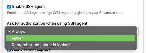 [email protected]: Permission denied (publickey,keyboard-interactive).If you are a Bitwarden user I believe it’s a great way to manage ssh keys especially cause the private key is no more stored on your local machine. Certainly you have properly protect your Bitwarden.